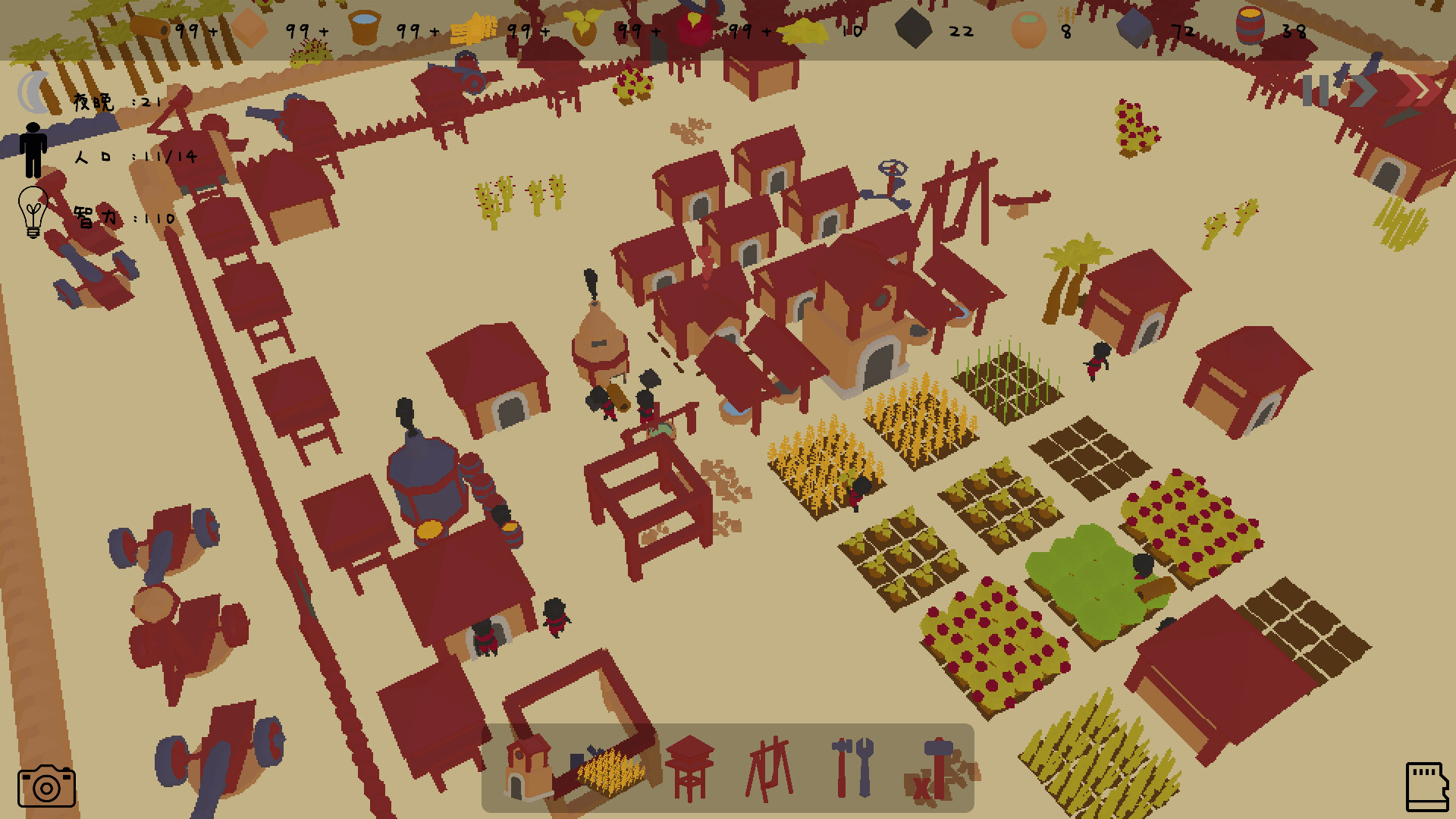This is a special simulation tower defense game, where you need to command each citizen to build a base. To produce food, one also needs to resist monsters from the night!