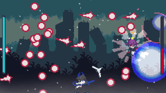 It is a Danmaku shooter ...... but the protagonist cannot shoot bullets. She only has a sword.