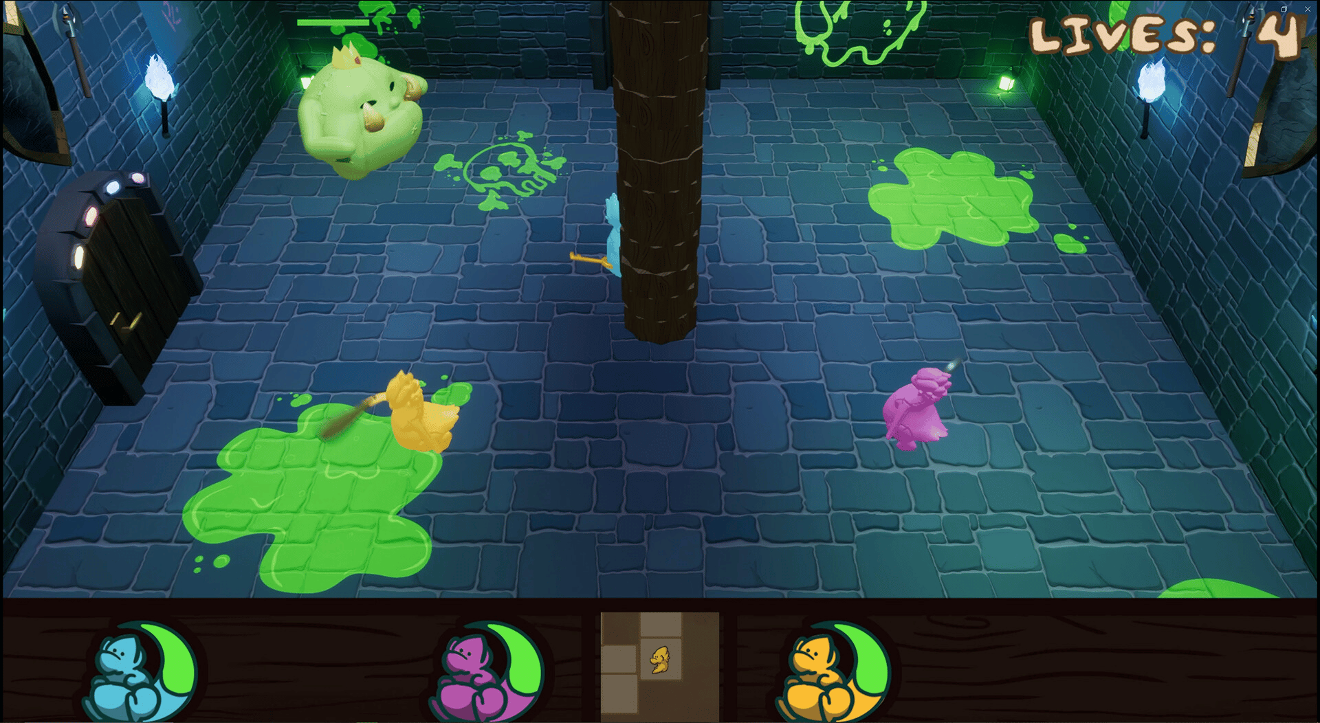 Wobble Warriors is a 1-4 player ragdoll fighting couch co-op game. In this dungeon crawler, you and your friends play as some wobbly dragons on a mission to conquer the goblins who stole your gold. Jump, dash, ground pound, and bonk your way to victory by clearing each room.