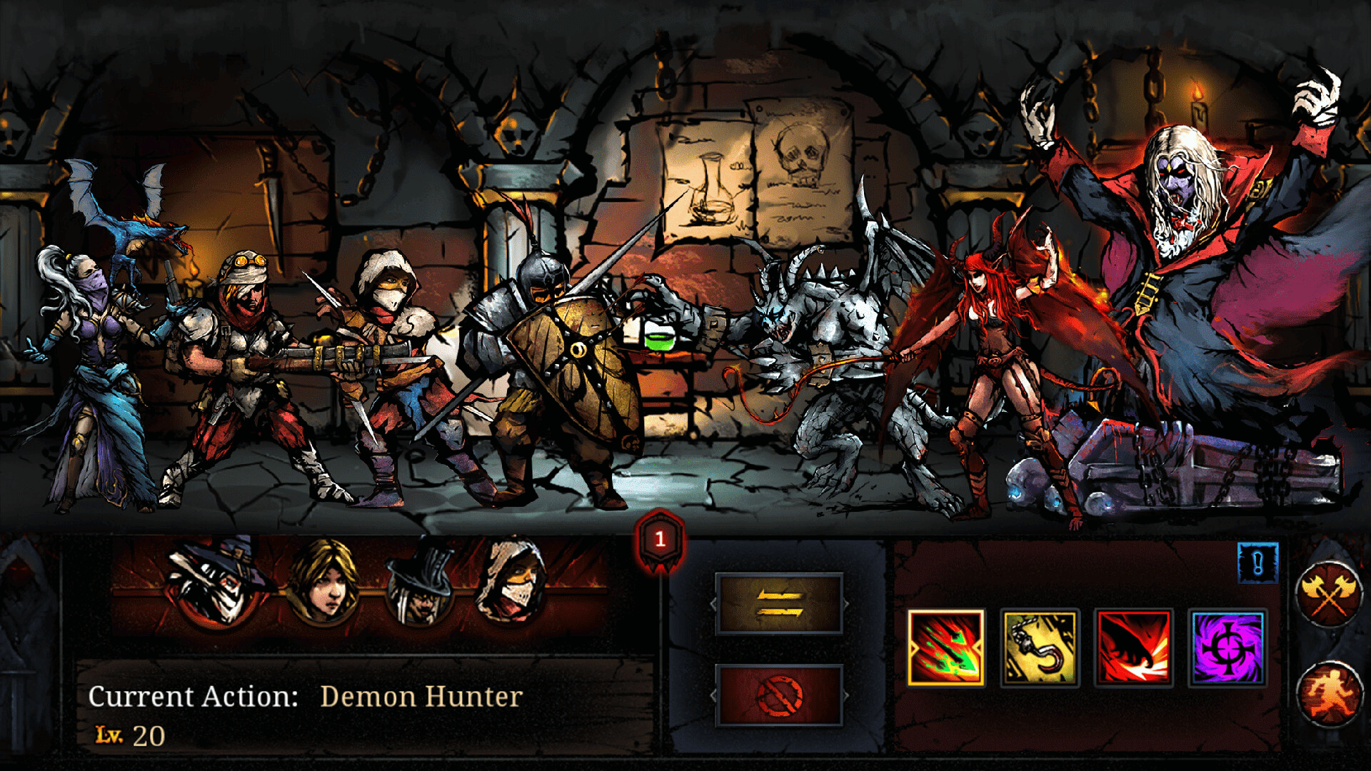 A side-scrolling, turn-based character development game, where you play as a lord leading your heroes to brave the depths of dungeons.