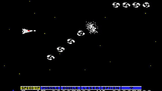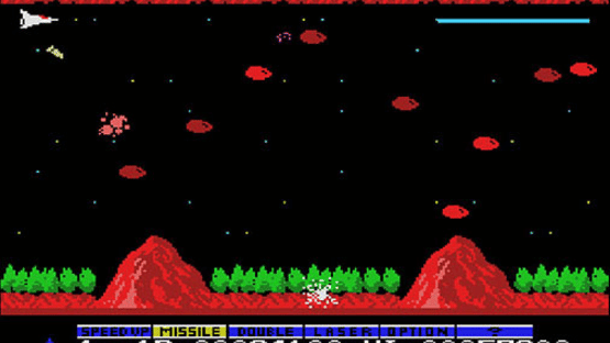 This version changed similar to the Famicom version but adds its slew of exclusive content to make up for the downgrade. A new stage, the bone planet was added between the Inverted Volcano stage and the Antennoid stage, featuring exclusive enemy types. There also four hidden warp zones and the ability to play as the titular ship from TwinBee if the MSX version of that game is played alongside Nemesis.