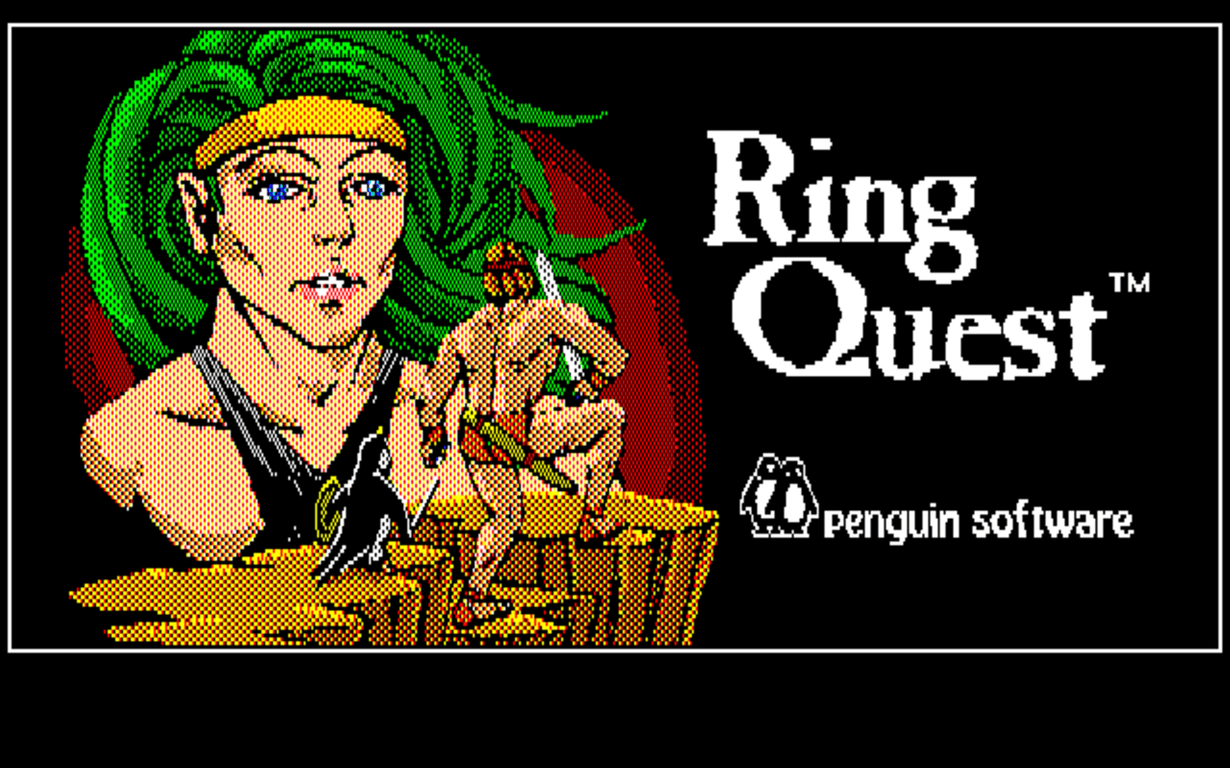 Ring Quest is the sequel to 1983's The Quest, both published by Penguin Software (later Polarware). The player, as the bearer of the Ring of Order, must evade the sorceress Lisa, who is possessed by the Ring of Chaos, until you can free her. An early fantasy text adventure by Dallas Snell.