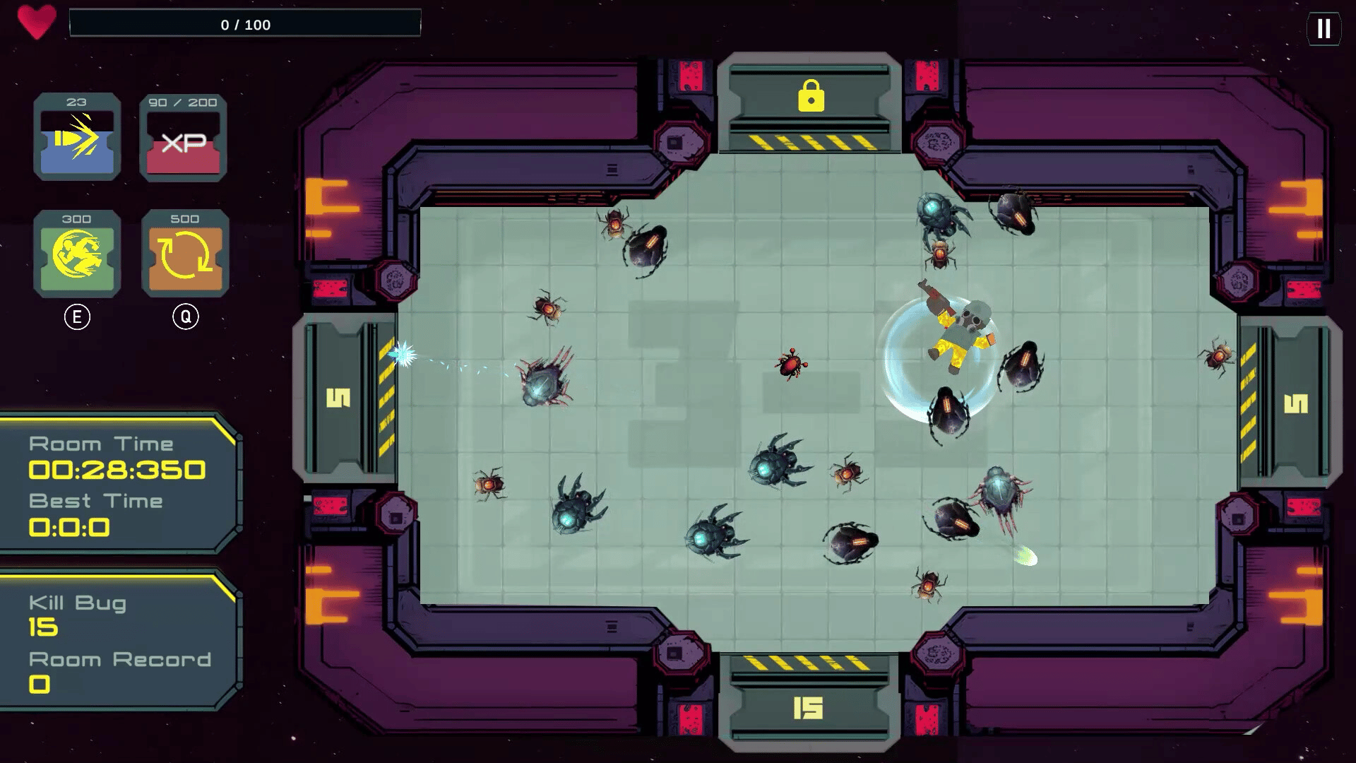 U.P.C. is a top-down shooter where you play as a fearless exterminator to solve a small bug problem at a nuclear research facility. With the rogue-lite elements, you must choose your path to the upper floors carefully, while trying to bug fixing in the facility.