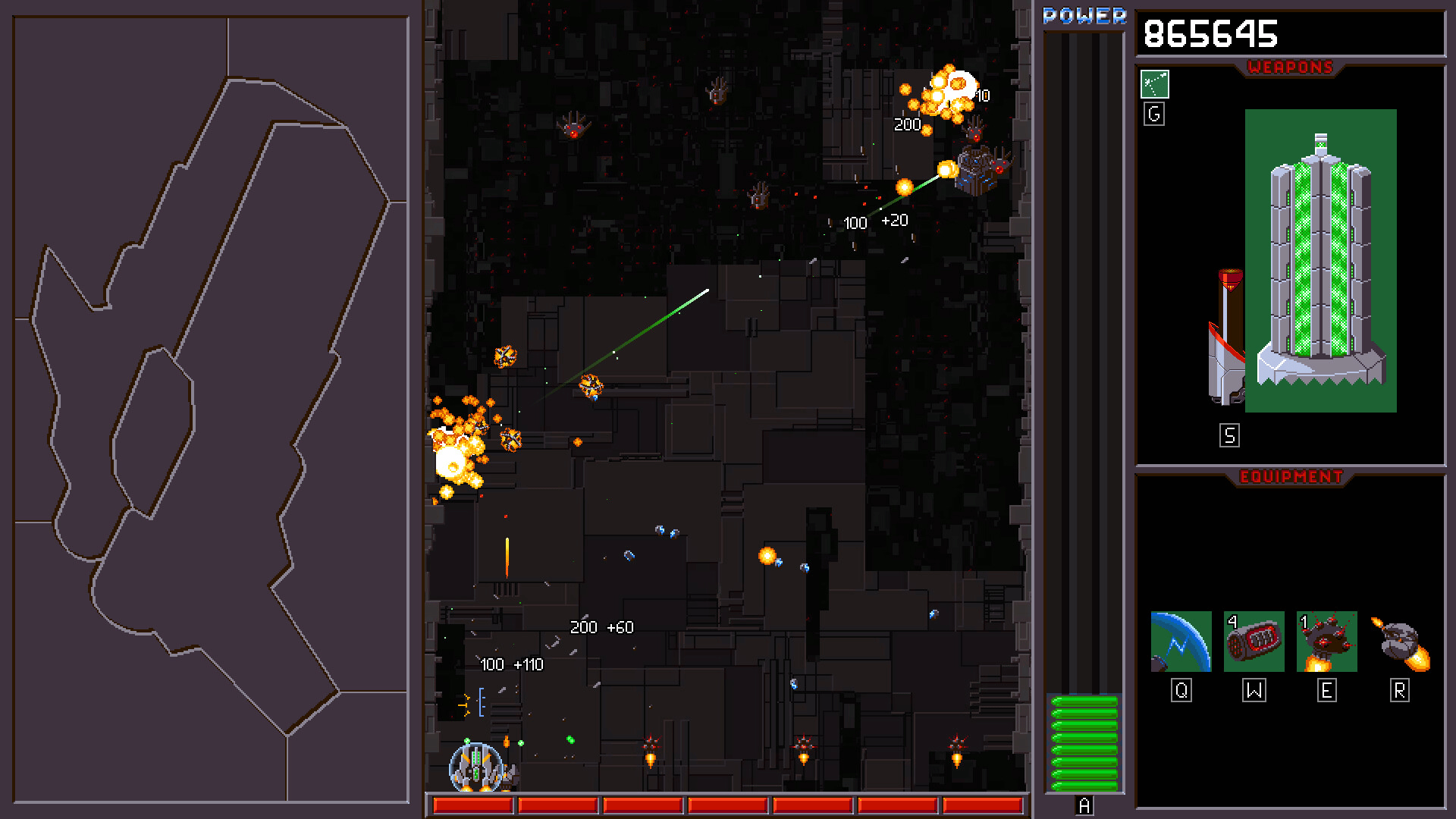 Technocide is a vertical scrolling shoot 'em up with a heavy emphasis on player weapons and abilities. You must not let enemies past you and reach your mothership! You will need quick tactical thinking as you weigh your weapons' strengths and weaknesses against your enemies and their positioning.