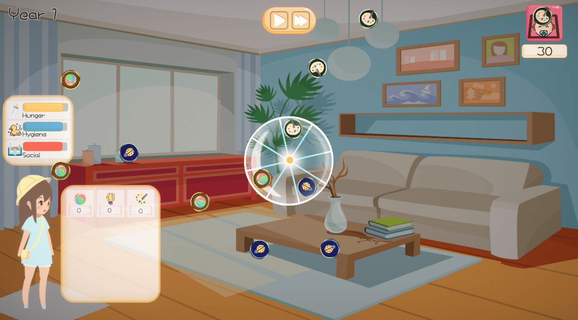In the School Booster, you will play the role of being a parent raising your girl to an adult (18). her grow-up journey will come from heaven, baby, kid, teenager, these four sages. And each stage has slightly different playing mechanics.