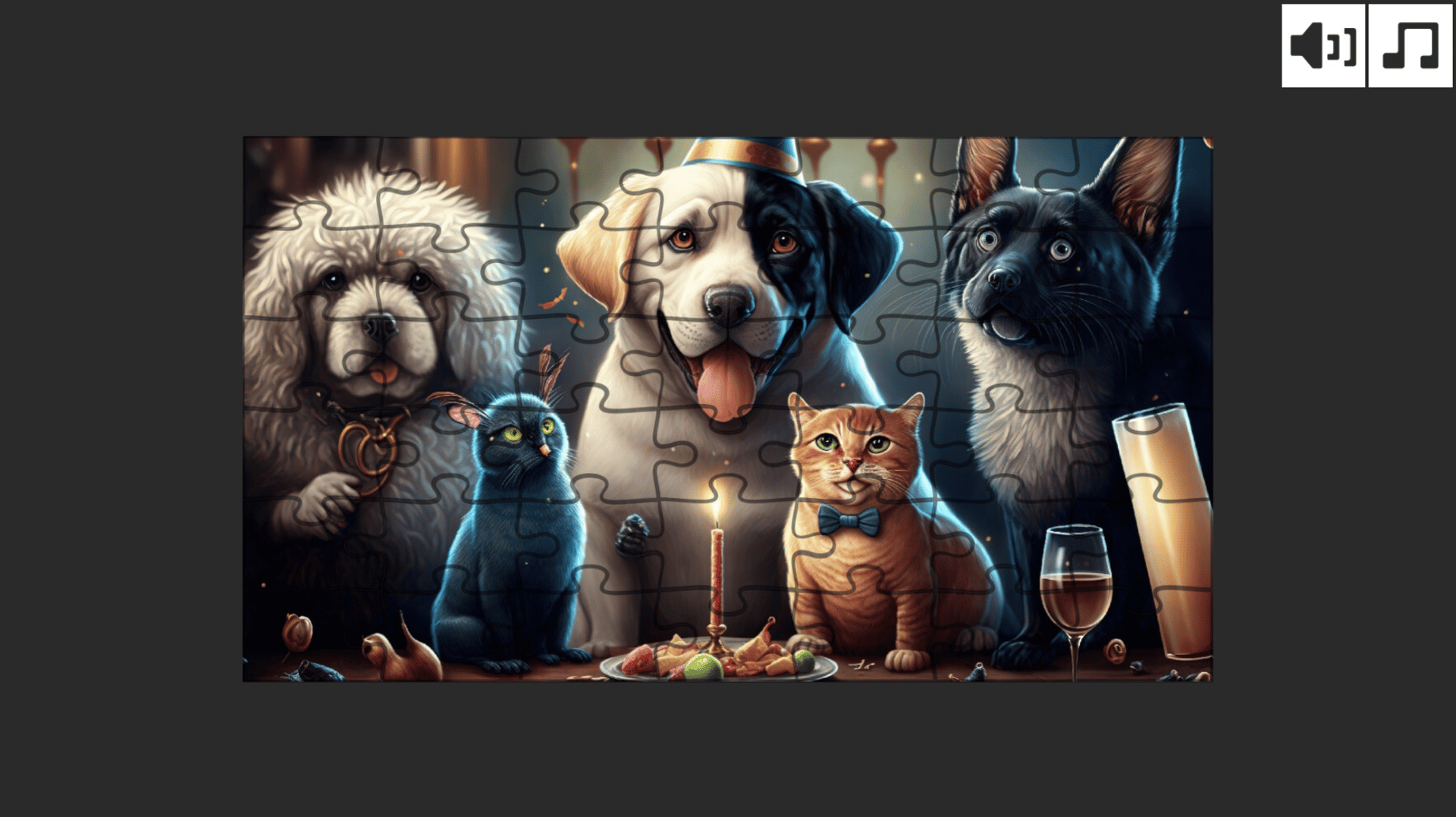 Do puzzles in a new puzzle way! Advanced puzzle layout and involving gameplay will help you to relax after a hard-working day. The player can choose to play with 20, 30, or 42 pieces.