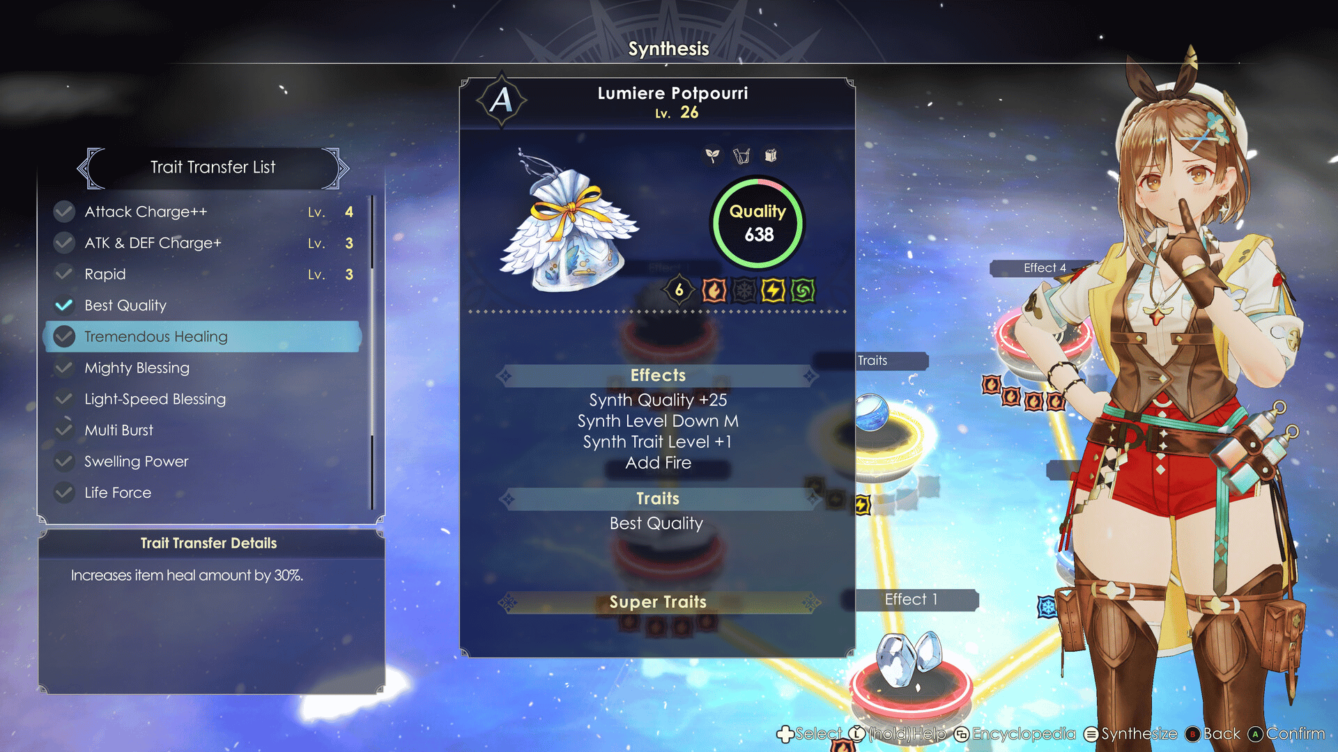 Useful new recipes and ingredients for synthesis! Adds new recipes, traits, and Super Traits that can be used in synthesis. Also adds new ingredients that can be gathered from various areas.