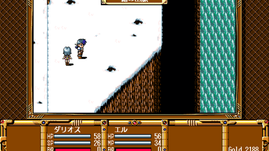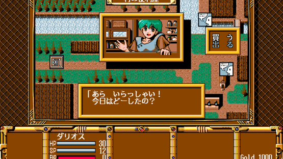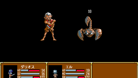 Gensei Fūkyō Den is a Japanese RPG with a somewhat "light" approach, both in story-telling and gameplay. The gameplay mostly follows the standard procedure of Japanese-style RPGs, although some features are simplified: there is no "world map", and town navigation is menu-based. Most of the gameplay consists of navigating maze-like top-down dungeons, fighting random enemies in turn-based first-person perspective combat. Characters use special points (SP) for powerful attacks and magic points (MP) for spells. Released through Disc Station Vol. 4 in 1994 for PC-9801.
