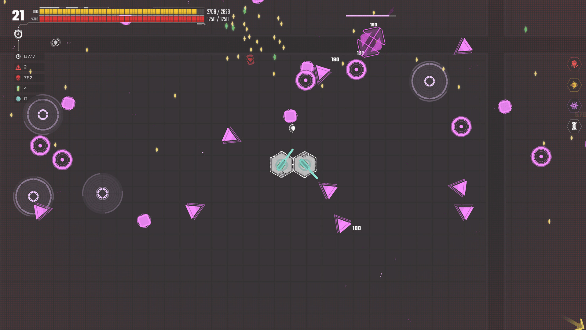 Dive into the symphonic chaos of geometric warfare! Unleash futuristic weaponry, customize your hovering platform, conquer relentless foes and dance to victory in this mesmerizing reverse bullet hell shooter.