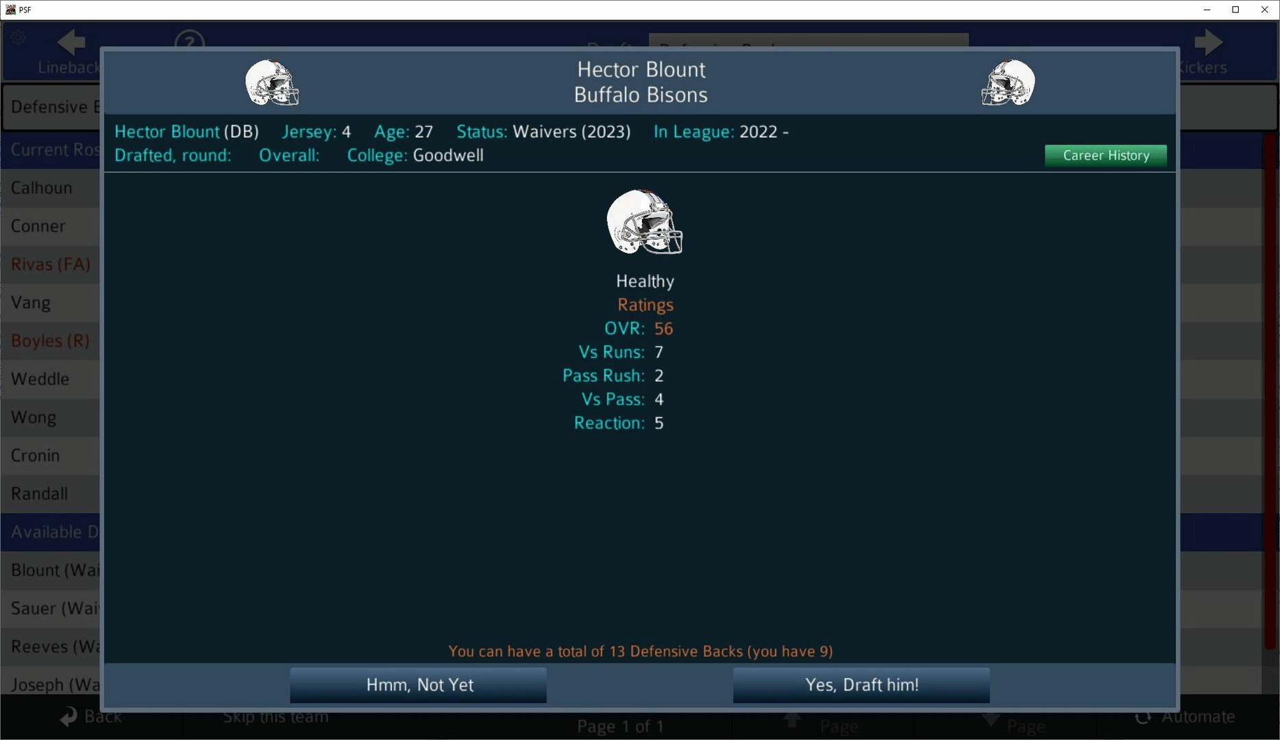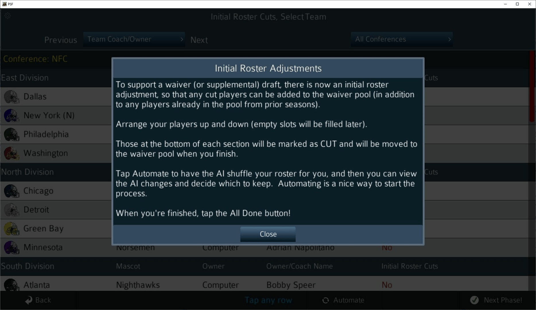 PSF 2024 - even more customizations! Sports Ticker! Waiver Draft! More stats! Improved AI! Improved Editor! Career can have 1 to 16 conferences and up to 140 teams! Fatigue and Injury sliders! More rules and overtime options!