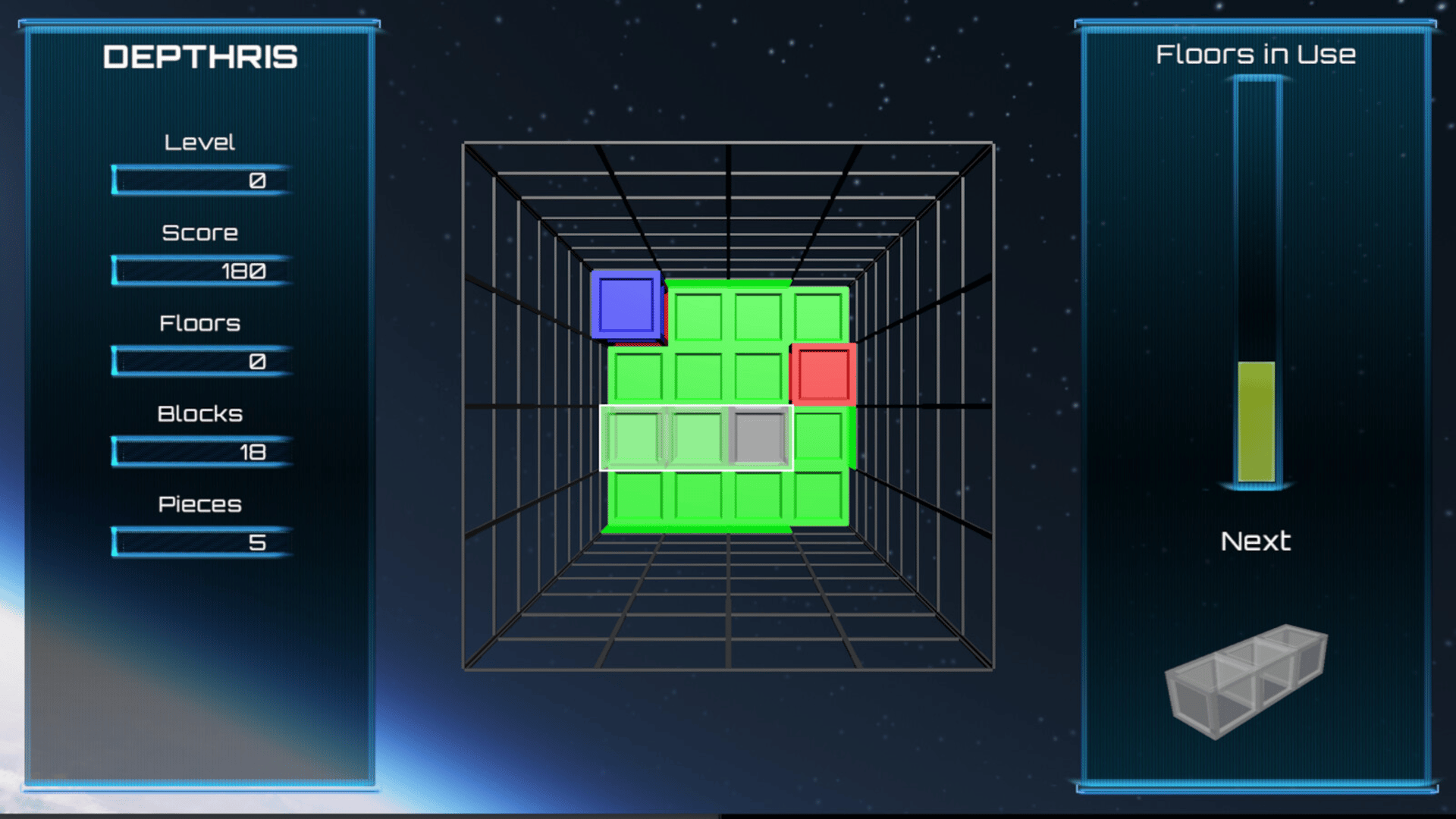 Depthris is a 3D puzzle game inspired by the classic BlockOut game for DOS. Move and rotate the pieces almost anywhere (except backwards) and aim for the highest score.