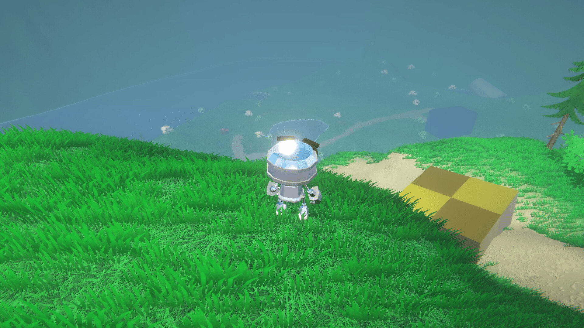 Project Colored Mountains is a 3D platformer game about a tiny little robot bouncing around a field (and a school, and a comically large grocery store...). Leap through a simulation and into real life while upgrading your abilities as well as defying the laws of physics. We really don't understand how this thing can bounce, stretch out and then jump again in midair. Also, you can roll around or something. Discover what those funny looking block things do, what those other funny block things do, and what those transparent funny block things do.