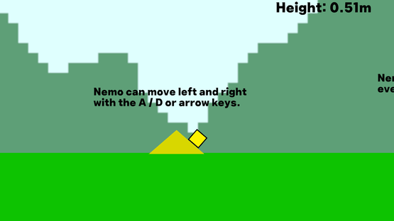 Our main character, Nemo, goes to school. He goes up and up, which is 351m above the sky. There's nothing else to do if you fall. Just to not be late, he have to go up without a break! There are dangerous things above. You have to hold back even if you're angry. Now, head to school!