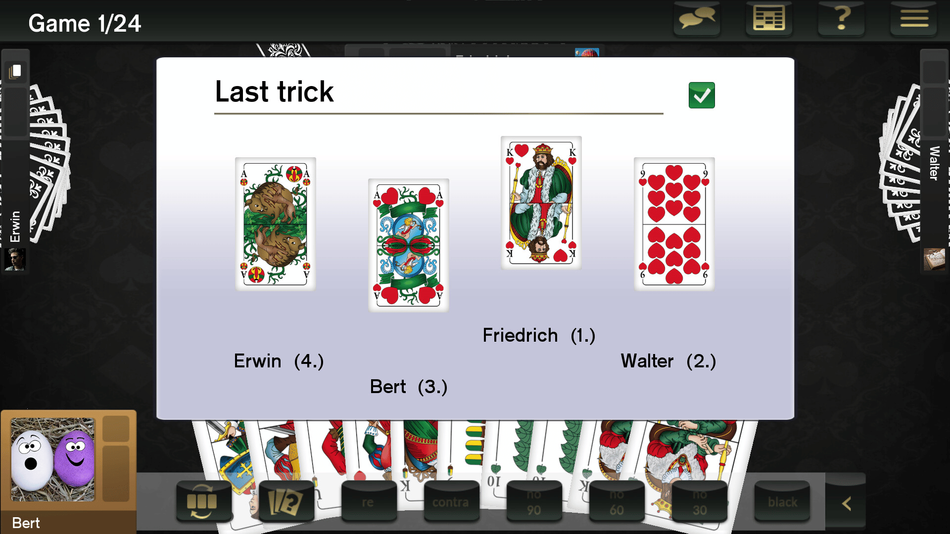 This new version of "Absolute Doppelkopf for Windows 11" contains an extended set of rules with an extensive compilation of different variants and settings.