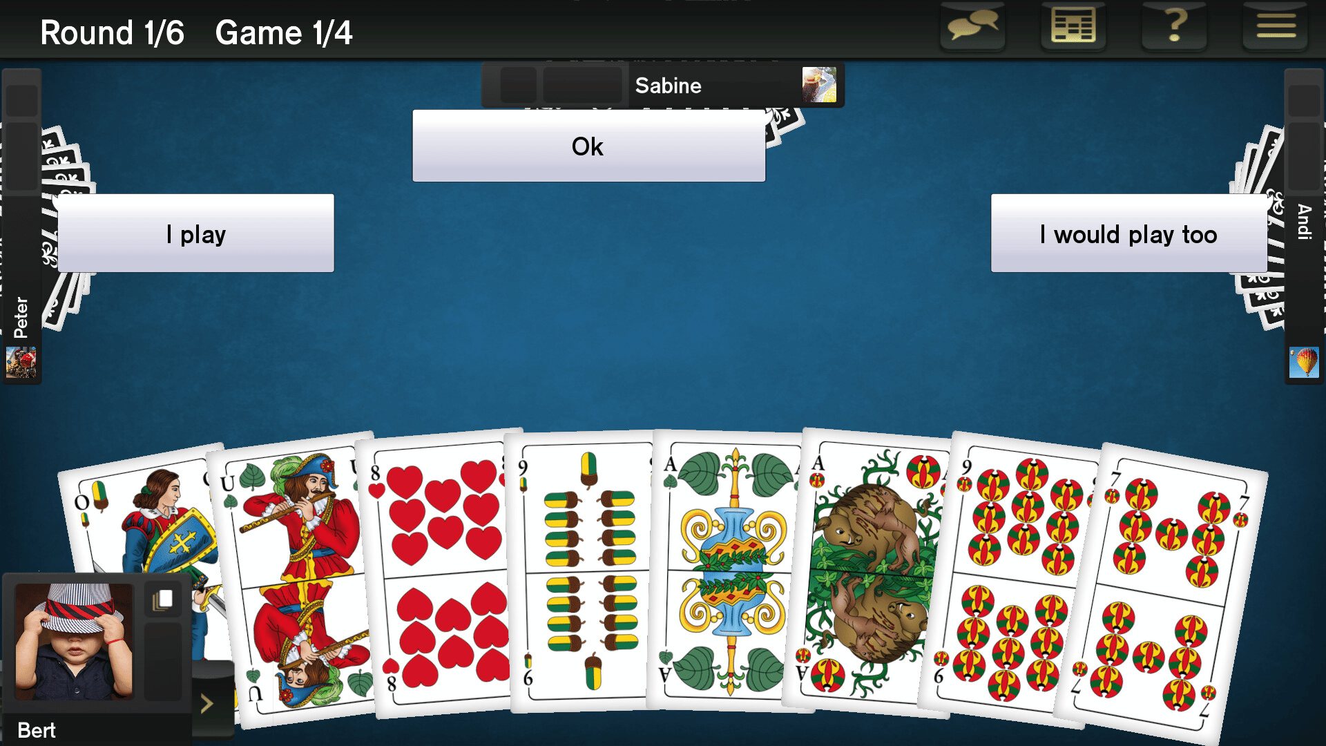 Schafkopf is a popular German card game and is played by young and old with great enthusiasm. "Absolute Schafkopf for Windows 11" is suitable for beginners and advanced players alike.