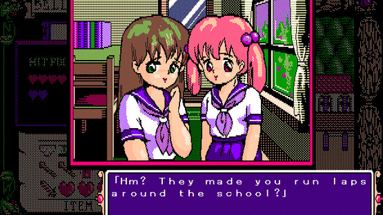 You are Nanako Hongou, a new transfer student to the all-girls school, St. Belloncho Academy. Hearing rumors of a sketchy body inspection taking place at the school infirmary, you decide to take it upon yourself to unearth the culprit, and expose the secrets of St. Belloncho Academy. Fight an eclectic cast of delinquents while going about your school life and solving mysteries.