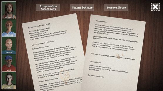 As a psychologist, manage your clients' phobias while confronting a serial killer. This horror game blends dialogue in the style of a visual novel with first-person point-and-click elements.