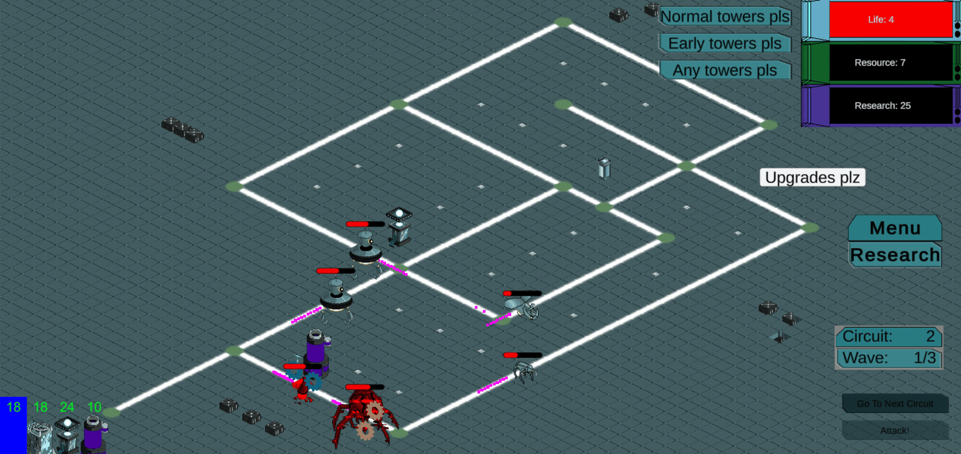 A circuit-themed tower defense game: Build circuits that can survive the onslaught of electrical bugs. Discover new enemies, research new and upgraded towers, and protect increasingly complex circuit paths.