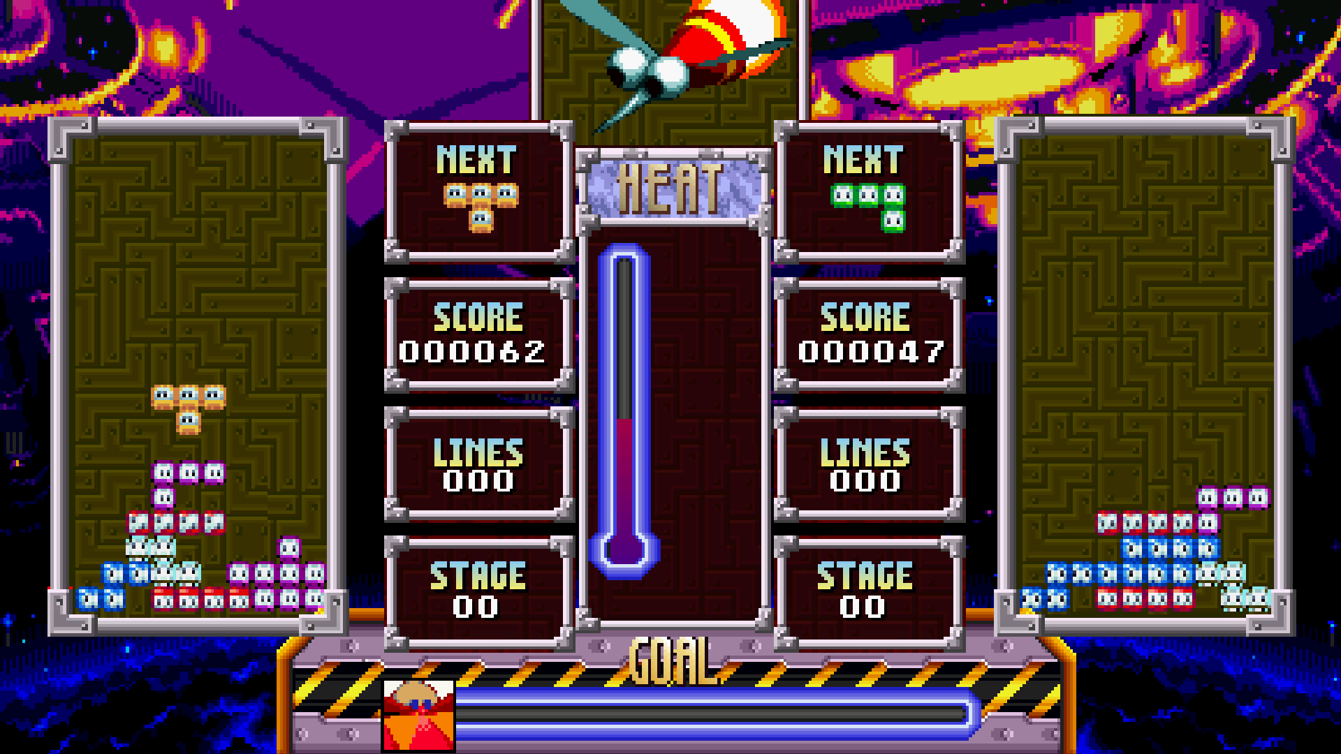 Dr. Robotnik's Mean Bean Tetris is a fan game where, after causing a dimensional rift and giving rise to an evil double of himself, the Badniks hold an enigmatic "Mean Bean Tetris" contest. Only the original Dr. Robotnik, with his cunning and skills, will be able to prove that he is the real one.