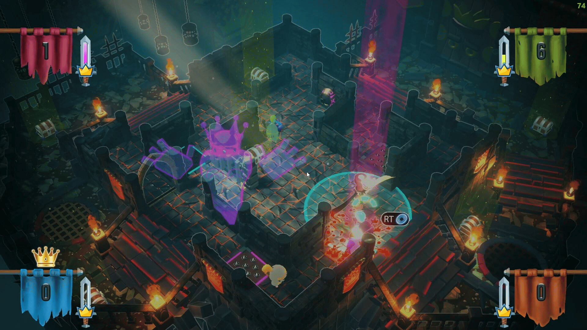 A couch co-op multiplayer game, where the goal is to grab the crown and keep it on your head for as long as possible to win the game!