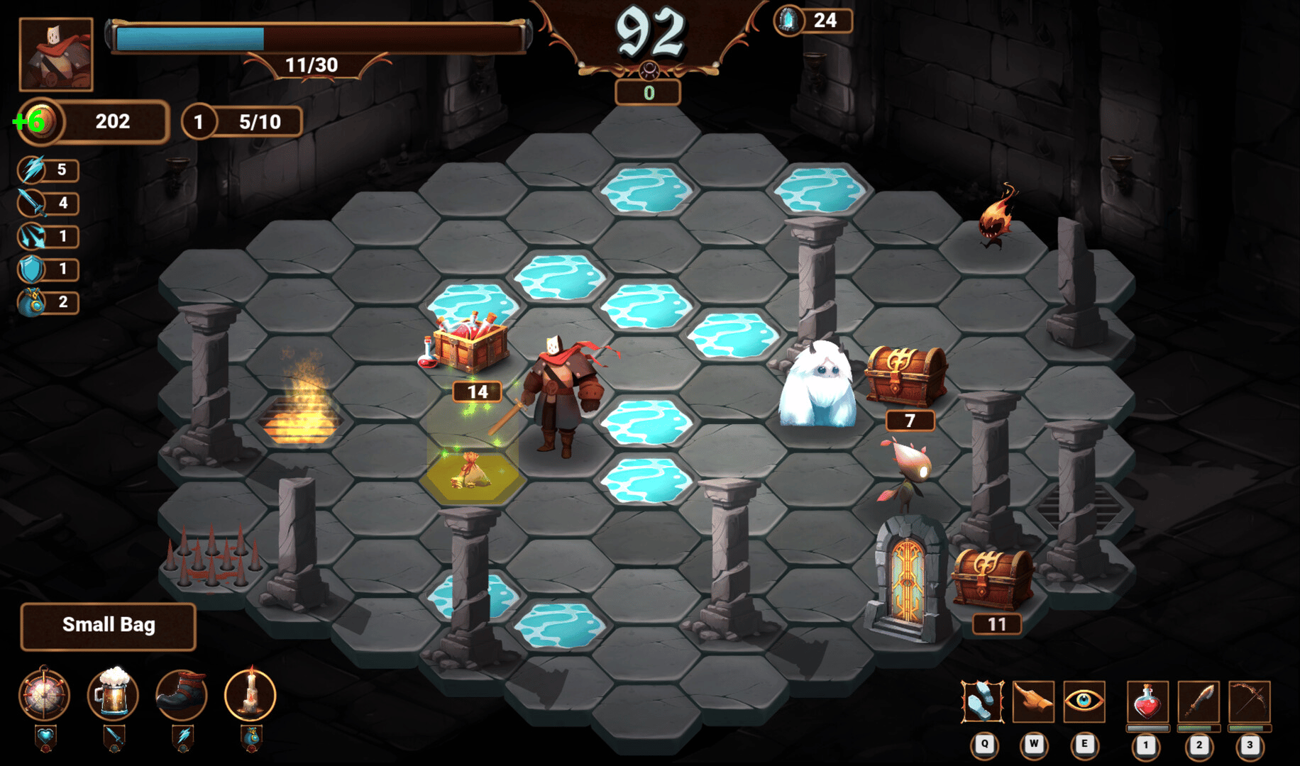 100 Steps is a roguelike tower crawler in a fantasy boardgame setting. In search of glory, you have accepted the gods’ devious challenge of climbing the Tower. Play your hand, adventurer. And watch your step.