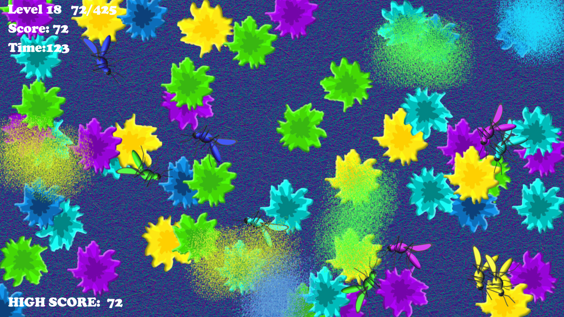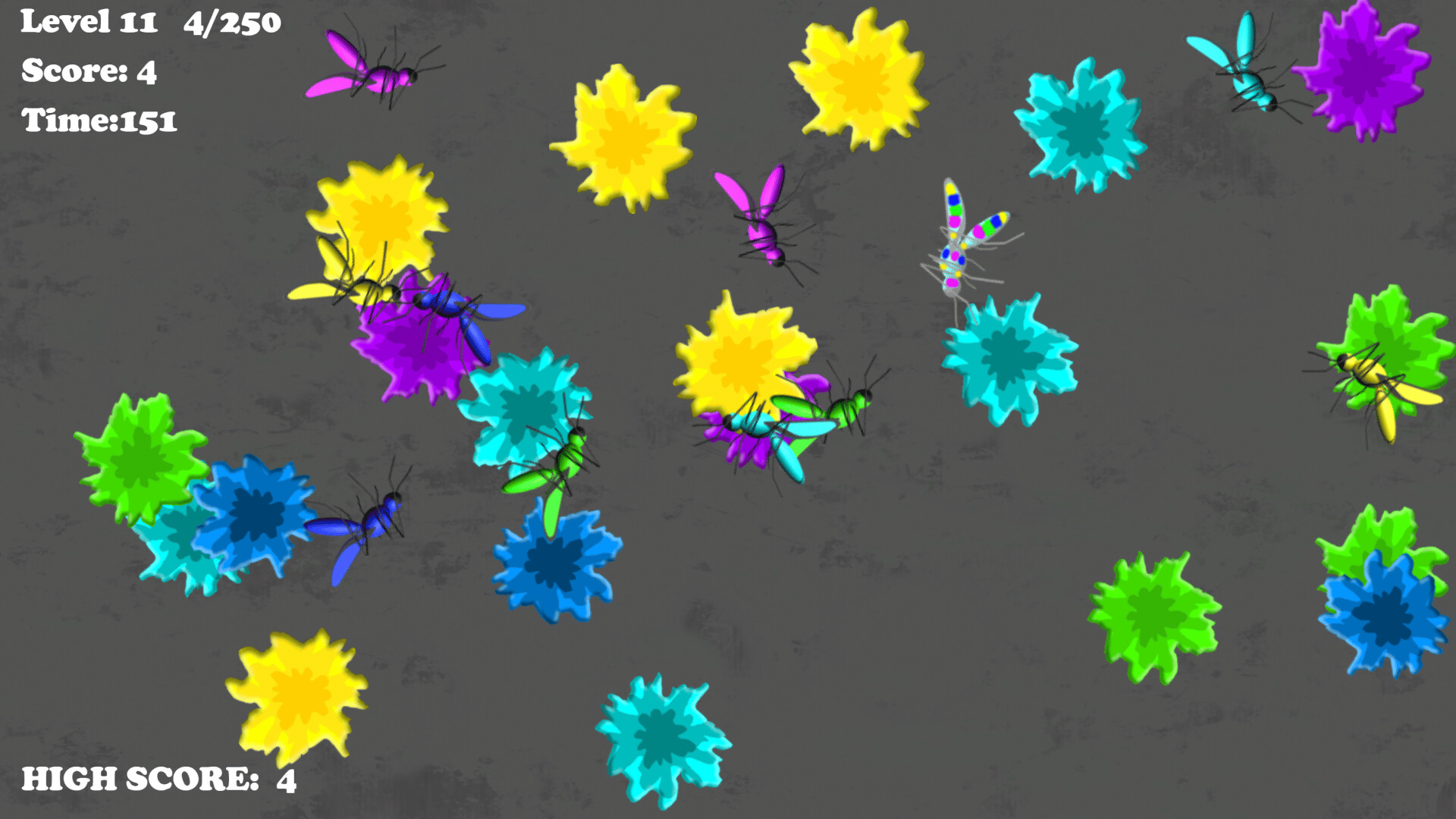 A colourful retro style matching game. Squash Mozzies and match splatter colours before time runs out.