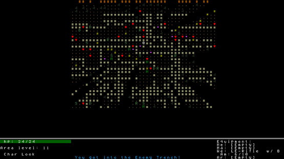 Enemy Trench is a Roguelike set during the First World War. You play as a British soldier fighting your way through enemy lines hoping to survive. You must contend with an onslaught of enemy soldiers, deadly terrain, gas attacks and more. Do you have what it takes to survive in the Enemy Trench?
