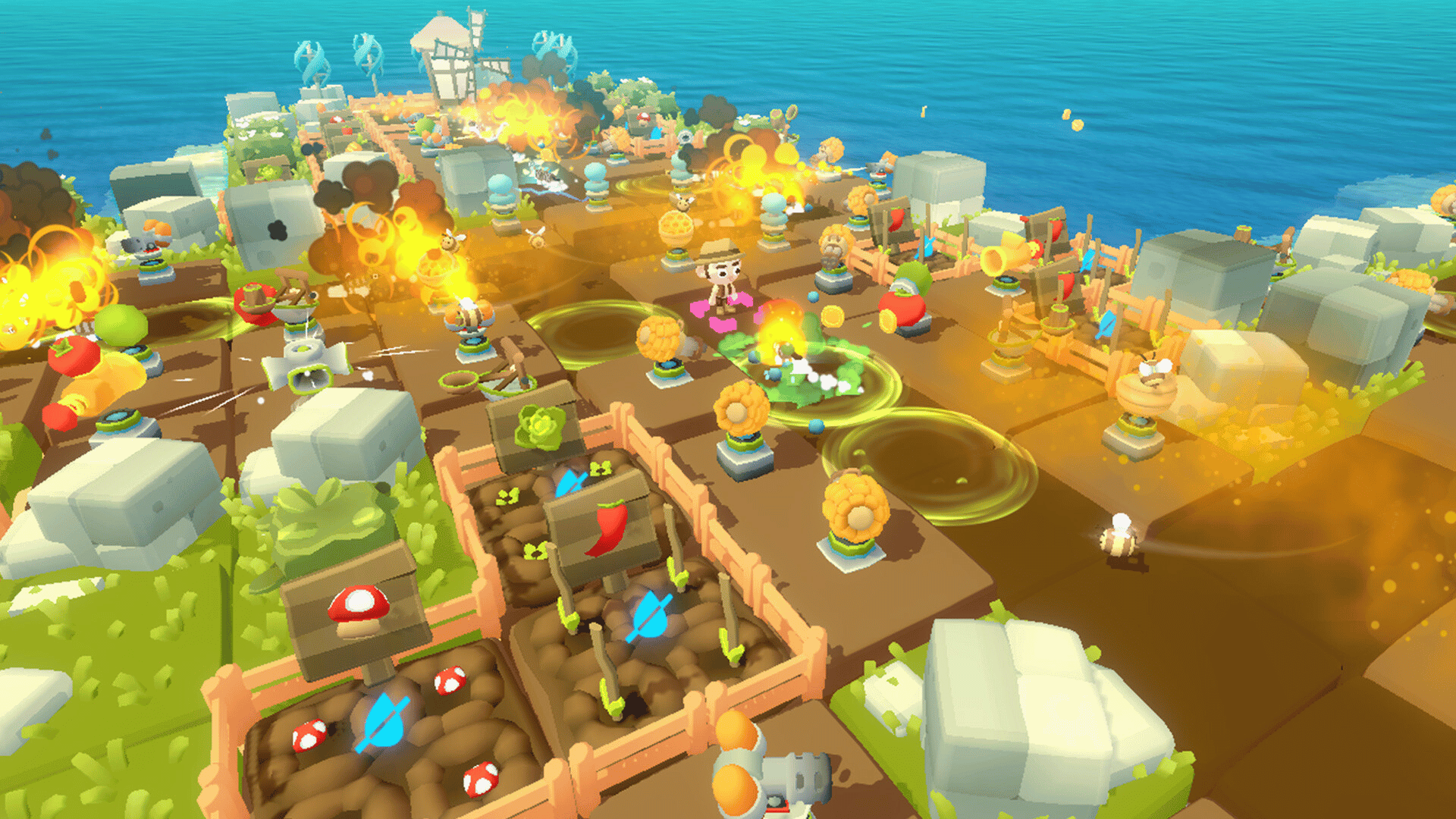 After an earthquake, you're sent to an island for rebuilding. Face nightly critter attacks, set up towers, and farm. Your mission is to seal the island or secure crops before defenses are breached. Now, grab your shovel and hammer, and enter the defensive battle!