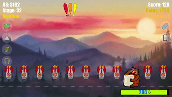 A casual arcade game concerning a bear named Bottle, the Cookie Game's goal is simple: to consume cookies. However, the missiles raining from the sky appear to be hindering this goal. Thus, you must make Bottle stronger by dodging these missiles and help her achieve her questionable dream.