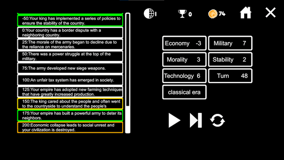 "Civilization Simulator": A casual simulation game that lets you control the fate of civilizations. Every click will impact the course of civilization. Whether it's prosperous trade or unexpected disasters, each turn presents a brand new challenge!