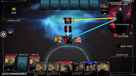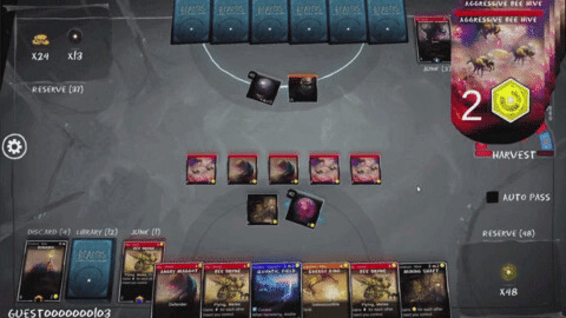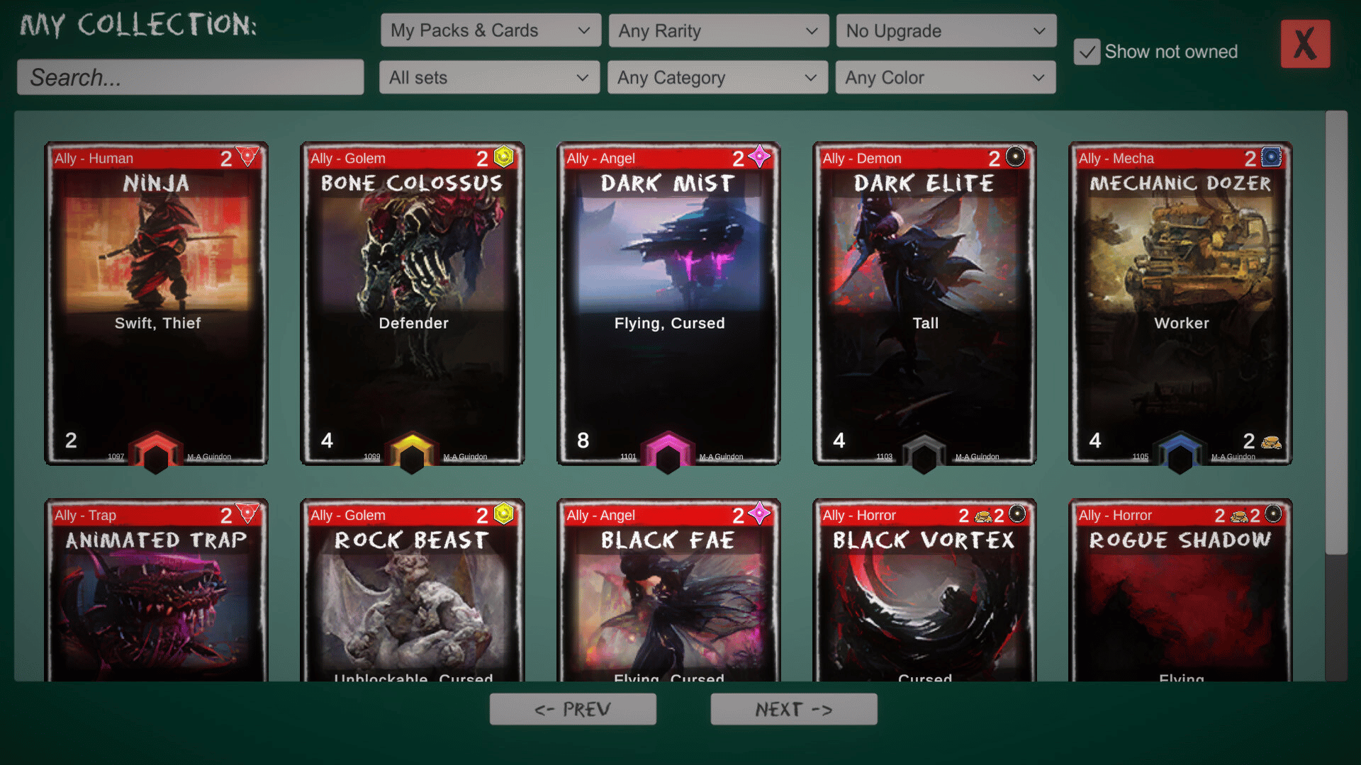 A card battle game set in a dystopian universe, focused on deck building, resource management and trading.