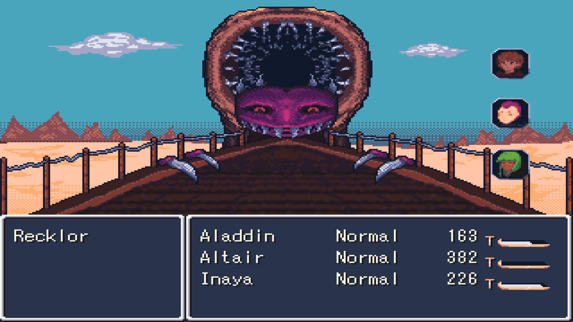 Experience a fantastical take on the classic Arabian Nights tale! Using the classic ATB (Active Time Battle) combat system, six adventurers will travel across sand dunes and past colossal sandworms to uncover a treasure which may save their kingdom.