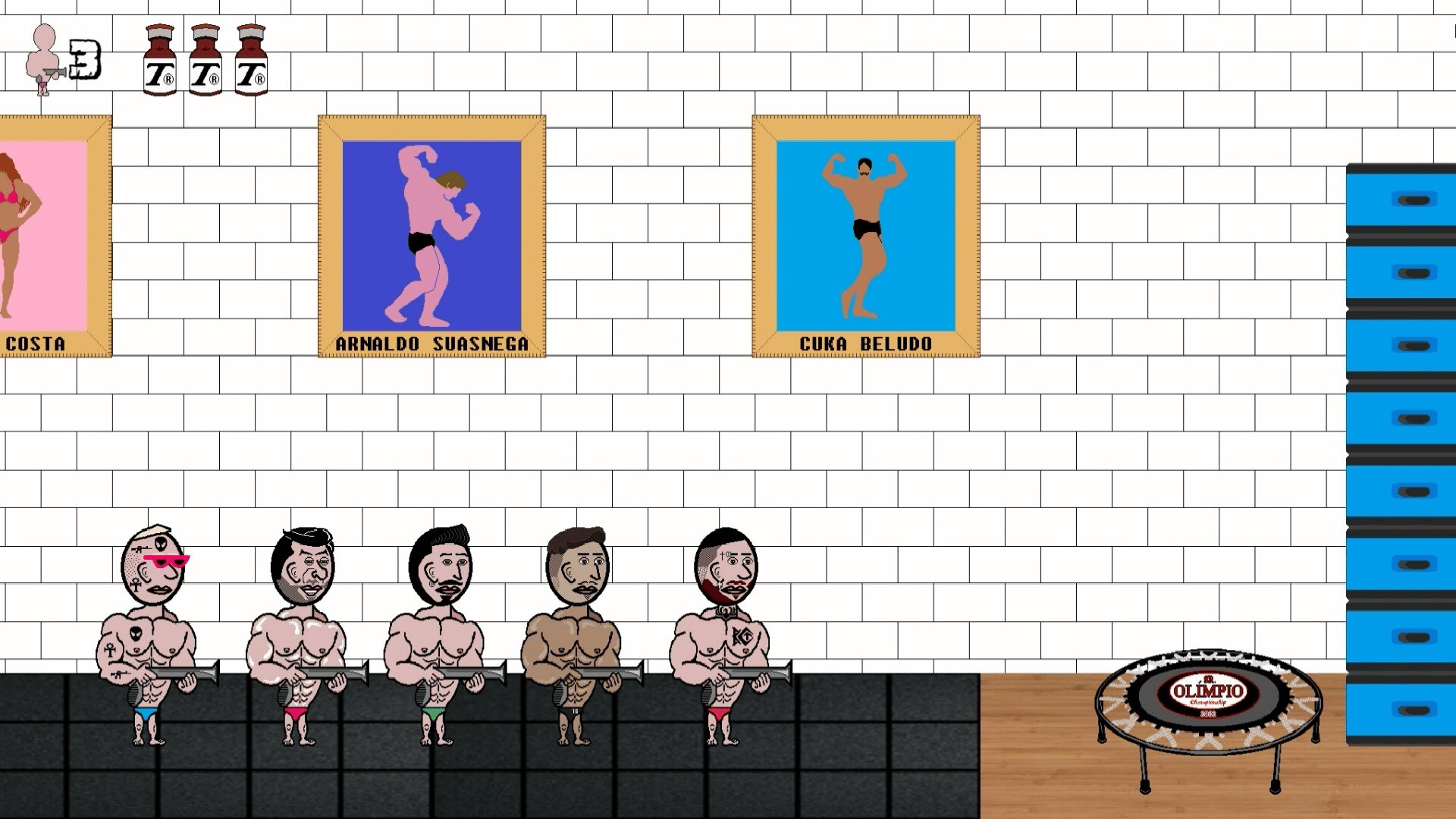 Apocalipse Maromba is a quick 2D platform shooter game inspired by memes from the Brazilian bodybuilding and fitness universe, with its main objective on making the player smile! This is a parody that combines comedy, bodybuilding, and fun, without using real names, images, or brands.