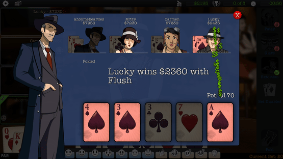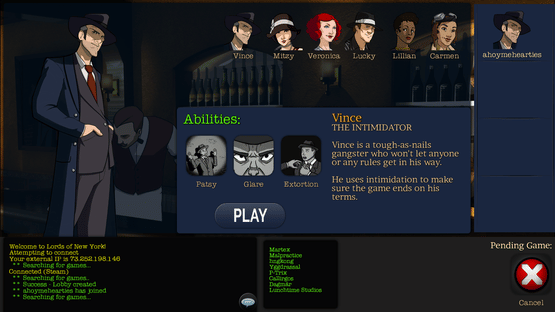 Lords of New York is a new kind of poker game where cheating is not just allowed, but the only way to win. Face off against the toughest, craziest gangsters in Prohibition-era New York on your way to the top, with fully-voiced and lovingly animated characters. A full emote system allows players to let their opponents know just how they feel. Story Mode is on the way, allowing players to learn more about their characters with a branching, deep story with special poker scenarios and mini-games.