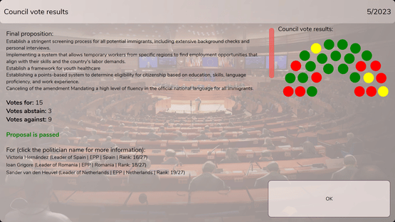 Welcome to Mobocratic Union, a thrilling political simulation game. This time, you'll leave the confines of a small, deserted island and venture into the grand spheres of the European Parliament. Get ready to make strategic decisions, form alliances, and shape the continent’s future!