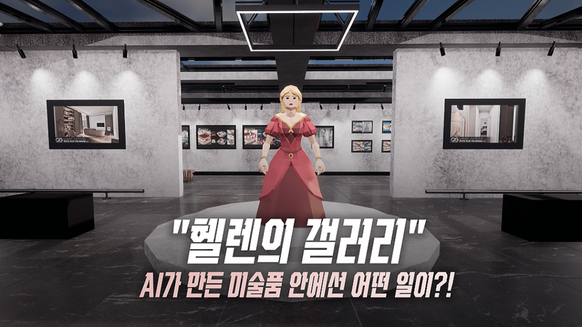 You just entered the gallery made by AIs. But the guide Hellen is strange to be an AI. The stories that AI created are also somewhat awkward. Shall we make our own stories and solve Hellen's mysteries in the four experience zones introduced by Hellen?