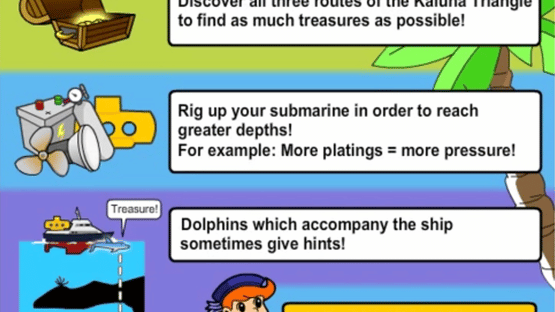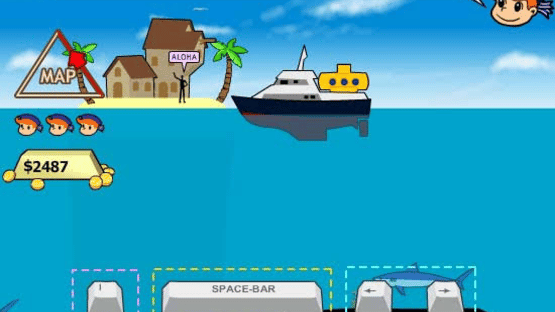 Use your Submarine to Plunder all the Treasures of the Caribbean! Careful, though, Sharks eat Submarines. Discover all three Trade Routes! Upgrade your Submarine to reach Deeper Depths! Follow Dolphin's advice and avoid the sharks.