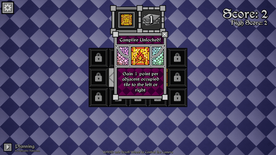 RoGlass is a tile-based roguelite puzzle game where you place unique tiles to score points and unlock new spaces. Reset the board once you're out of tiles but keep progress on achievements, unlocks, etc. Keep expanding the board and try to unlock every achievement!