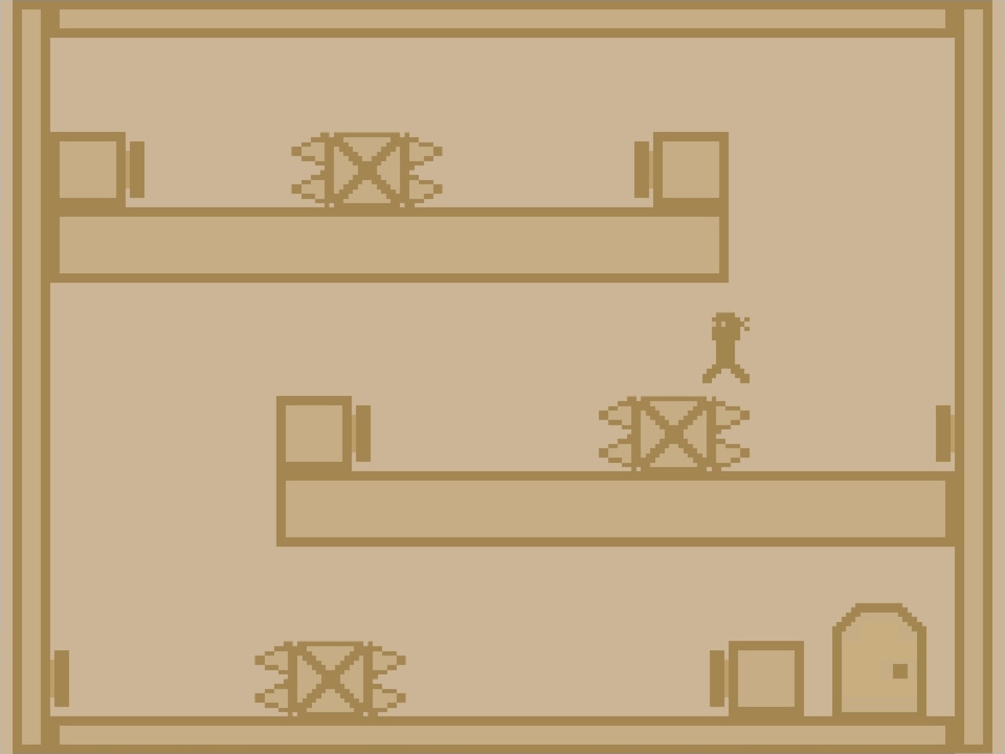 The ninja is trying to get to the door, but there are some annoying boxes in the way. Good thing this ninja has some crazy powerful legs! Those boxes need to be taught a lesson, so it is time to push, kick and break some boxes!