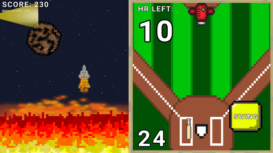 SIMULTANEOUSLY complete whacky minigames while piloting a spaceship through an endless runner of difficult obstacles. Fail a minigame or hit an object and your ship will meet a FIERY EXPLOSION. Are you skilled enough to fly while also finishing minigames? Prepare to LAUNCH INTO FAILURE