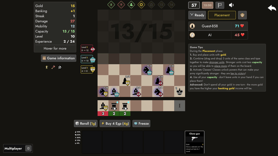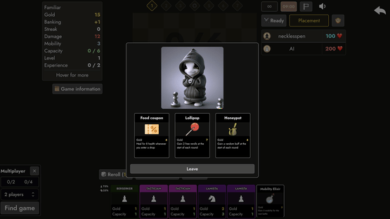 A PvP chess auto battler! Strategically build your army, use tactics to position your pieces and then watch them fight against your opponents! Can you assemble the strongest force?
