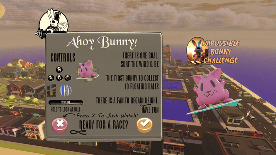 Surf the wind as a Bunny and race against three other Bunnies to collect checkpoint balls. The game features a robust racing AI that is very challenging to beat. You’ll have to learn quickly if you want to beat the Impossible Bunny Challenge!