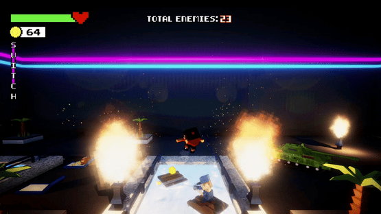 Dive into an adventure where you unlock characters, control vehicles, and master your weapons. Solve puzzles, relax by beaches, and shop at local markets. Collect 'kilos’ for snacks and health. Enjoy retro visuals, hand-drawn cutscenes with amateur voiceovers, and a groovy original soundtrack.