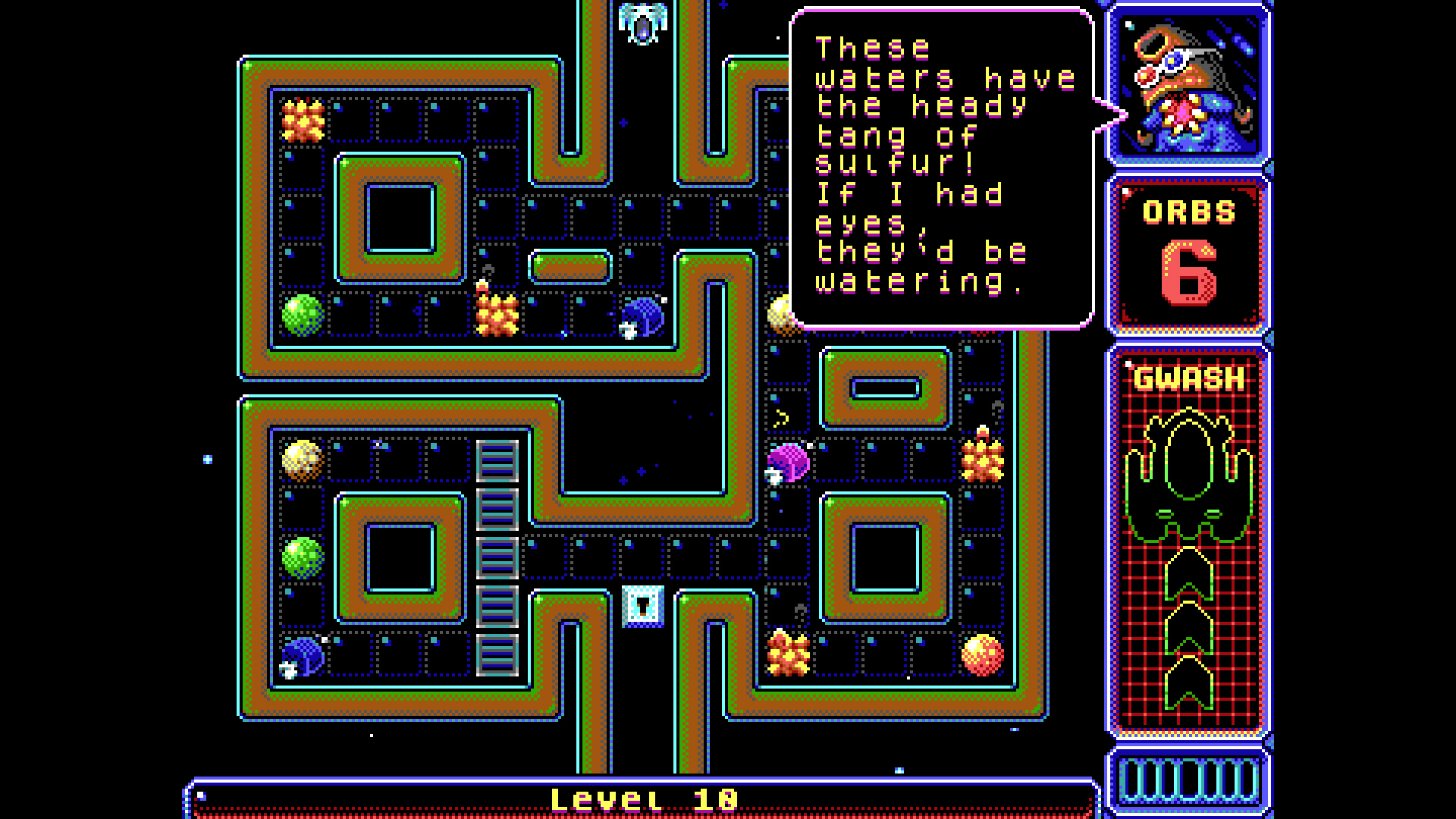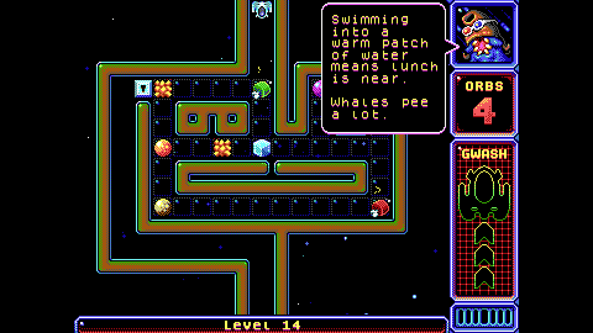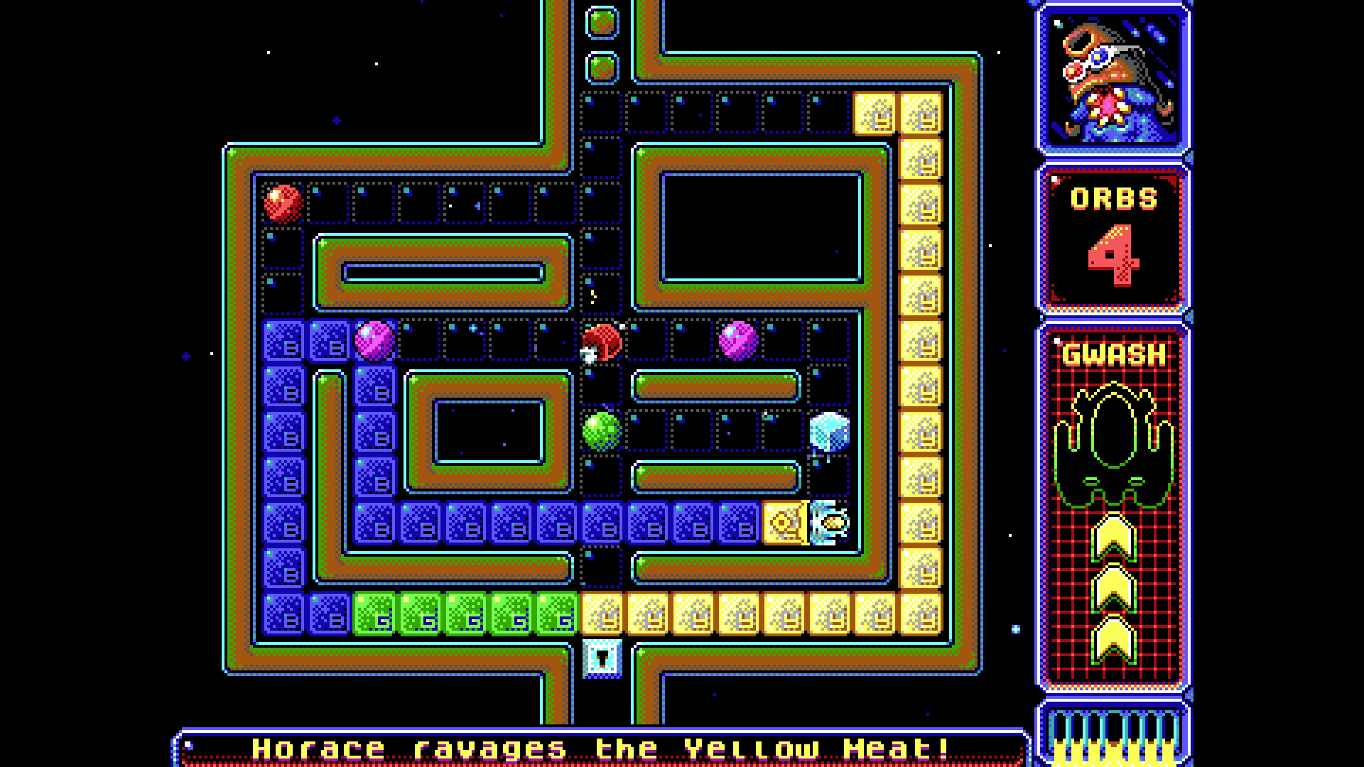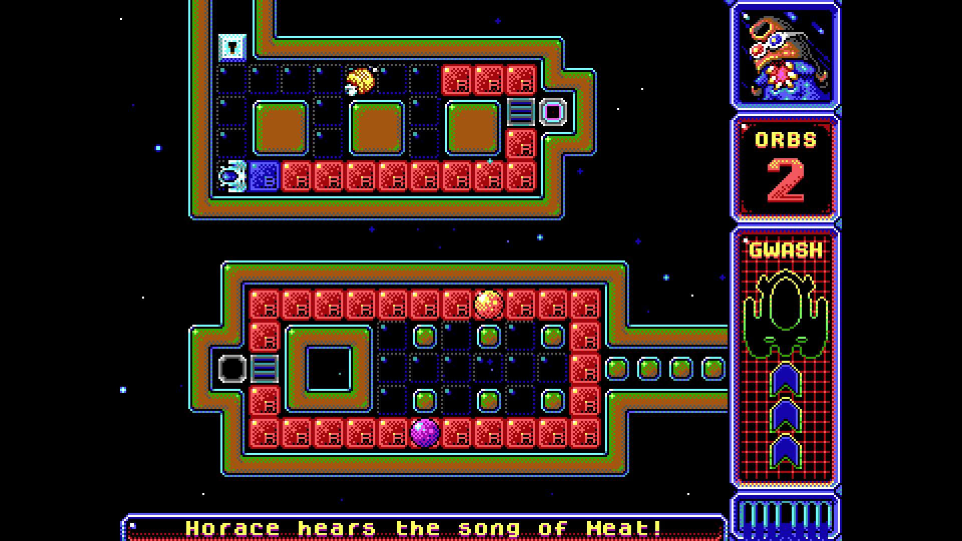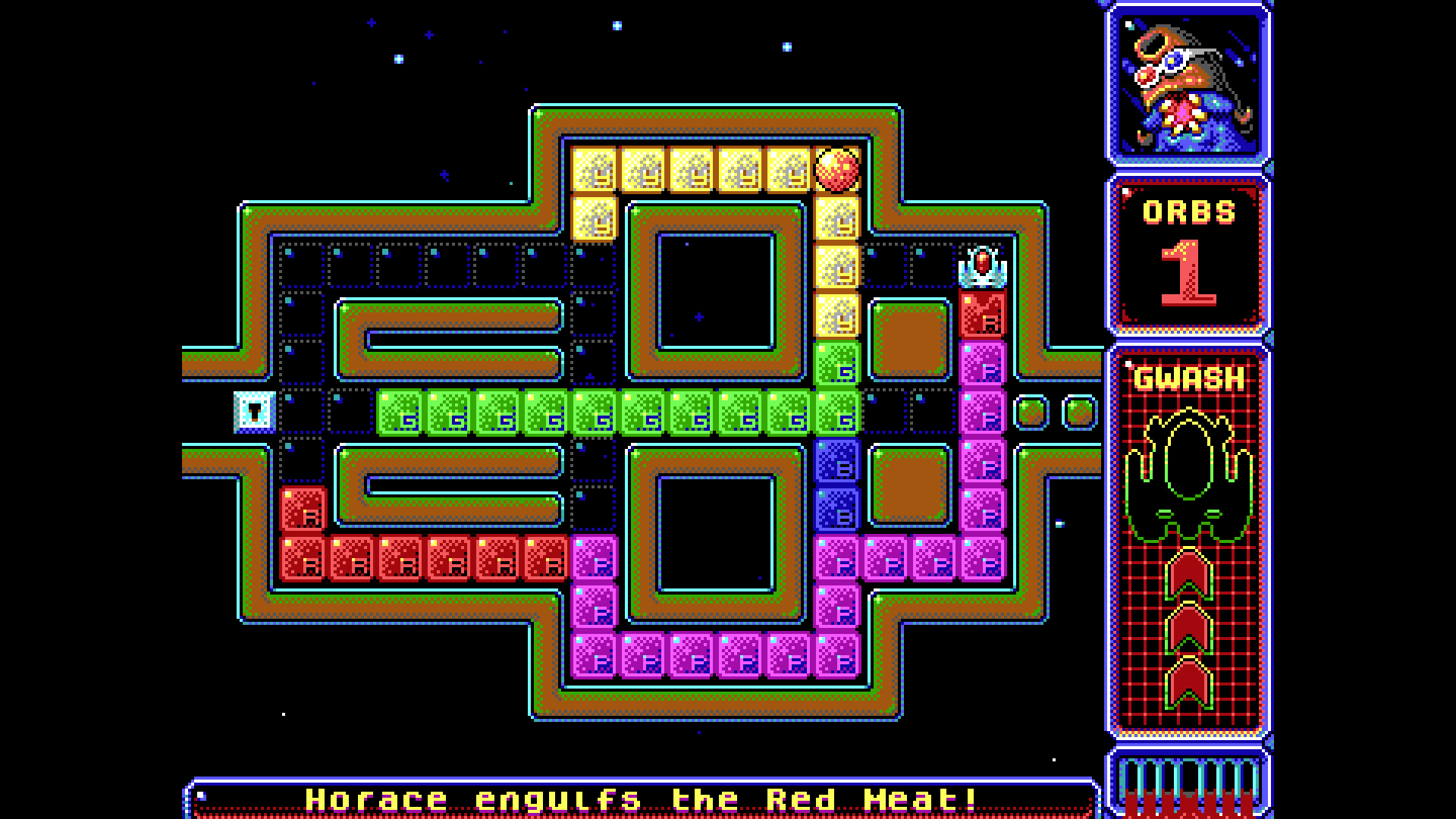In Horace Hagfish, players engage in a top-down puzzle game that revolves around color mixing and matching. Plan your moves to mix colors, collect orbs, and unlock the exit without generating the color brown.