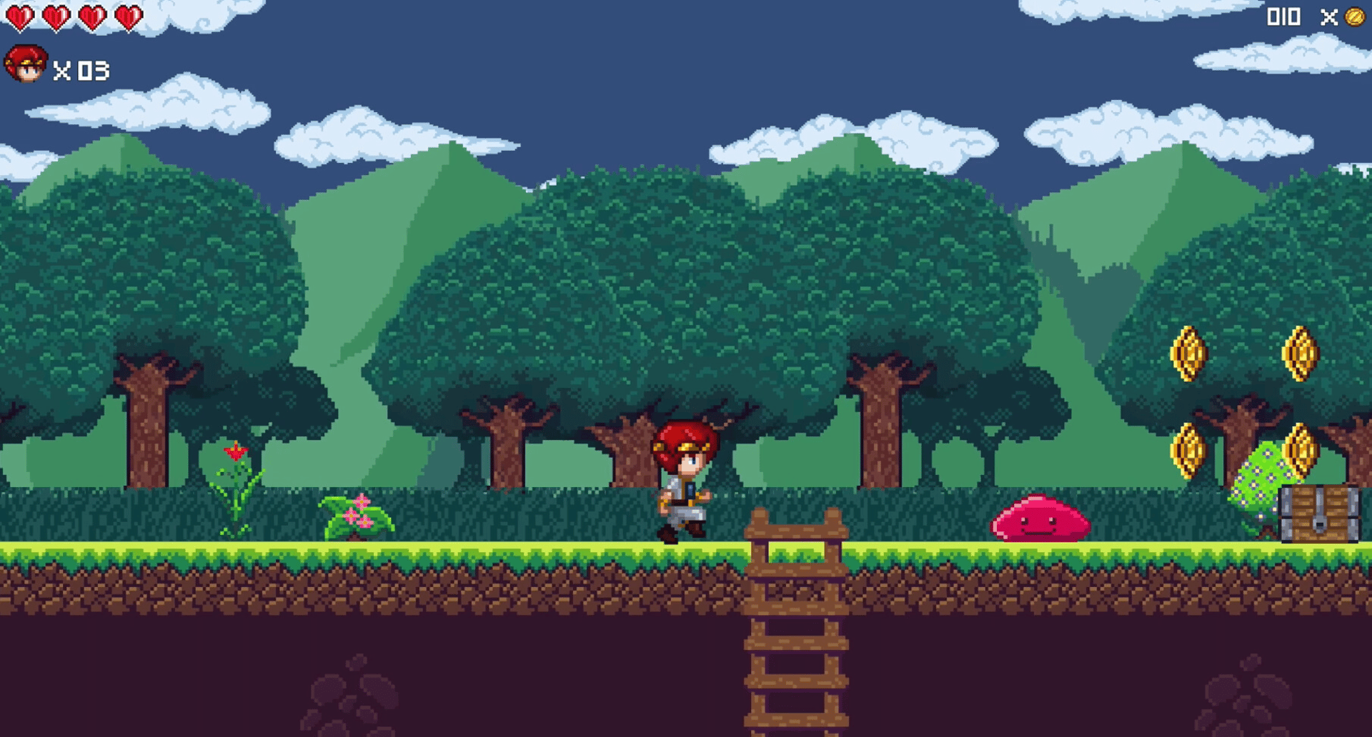 Rescue the gem stolen by the evil sorcerer Vamooth and restore peace to the kingdom. Prepare yourself to face a wide variety of enemies, such as slimes, evil trees, and giant bosses that occupy almost the entire screen.