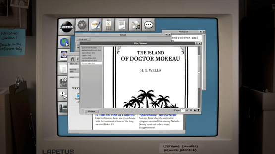 A puzzle-horror experience - navigate a huge mid-90s internet and use a variety of programs on your work computer to take down your pharmaceutical company without getting caught.