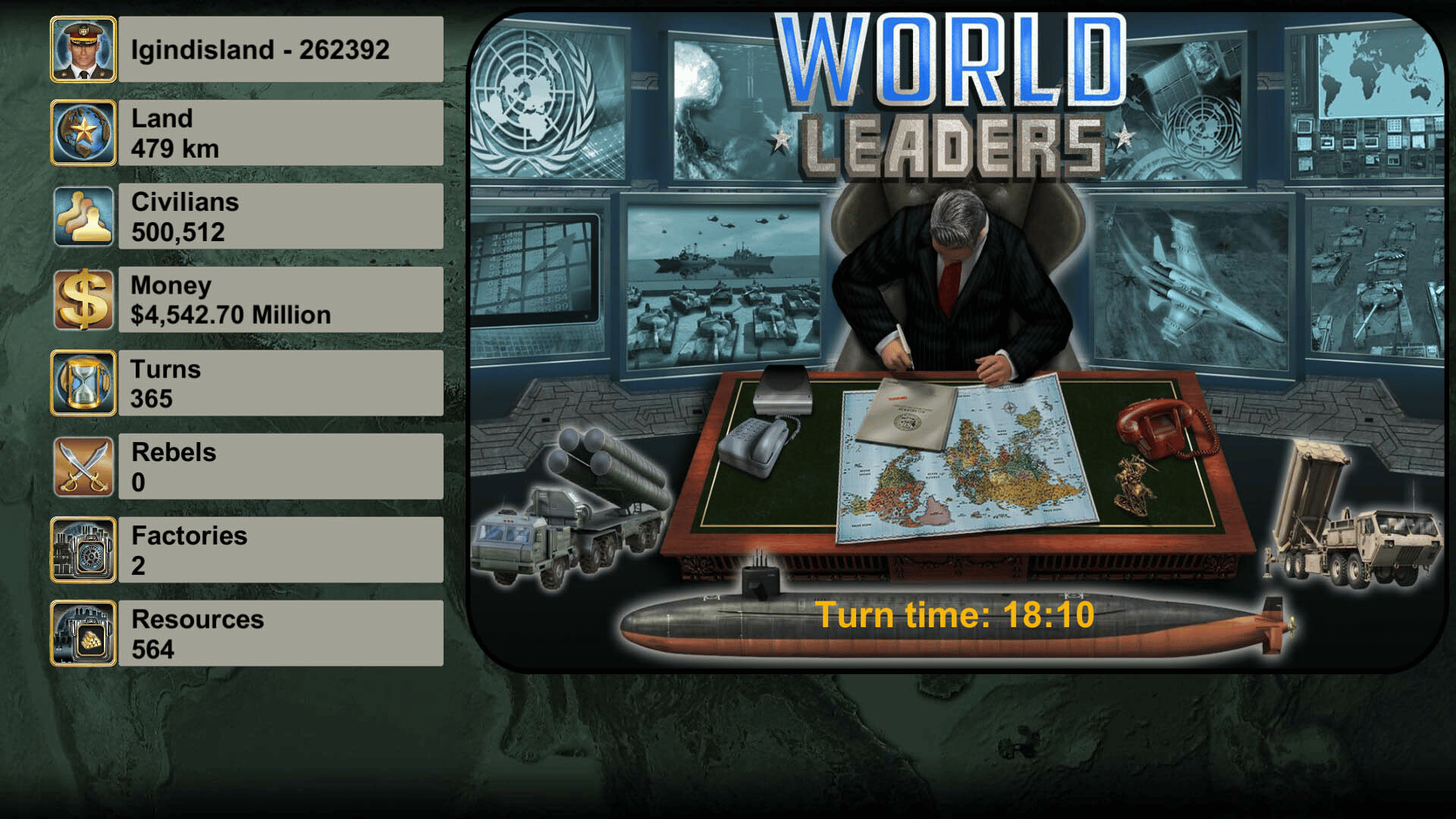 Lead your nation to victory in this multiplayer turn-based war strategy game!