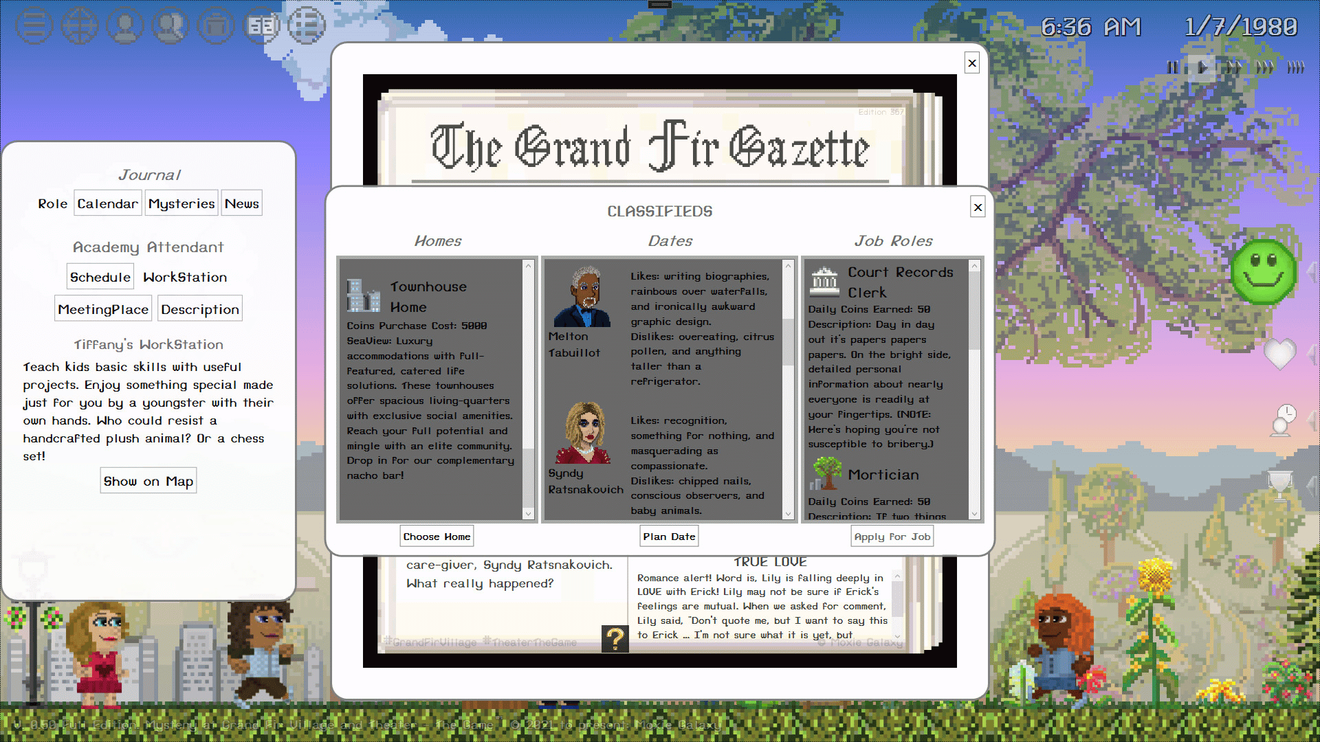 Enter a colorful town where new stories evolve every day. What clues will you find in this mystery life-sim? Will you make new friends? Be the local trouble-maker? Spend a rainy day at your treehouse?