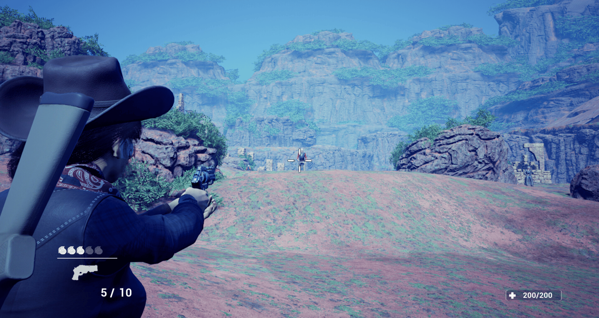 be a woman cowboy and try to find all treasures and main treasure to finish game and beware enemy cowboys in this western shooter parody