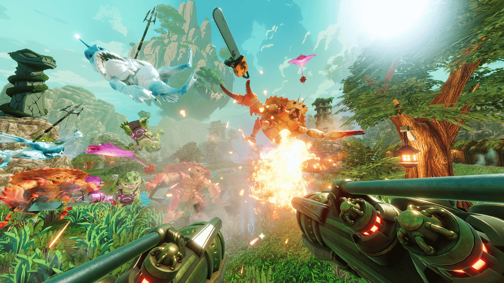 Fight against insane hordes of demons to prevent an evil overlord from conquering Sky World in this first-person survival roguelike shooter. With an arsenal of weapons, perks, and items, the battlefield quickly transforms into a fast-paced bullet hell.